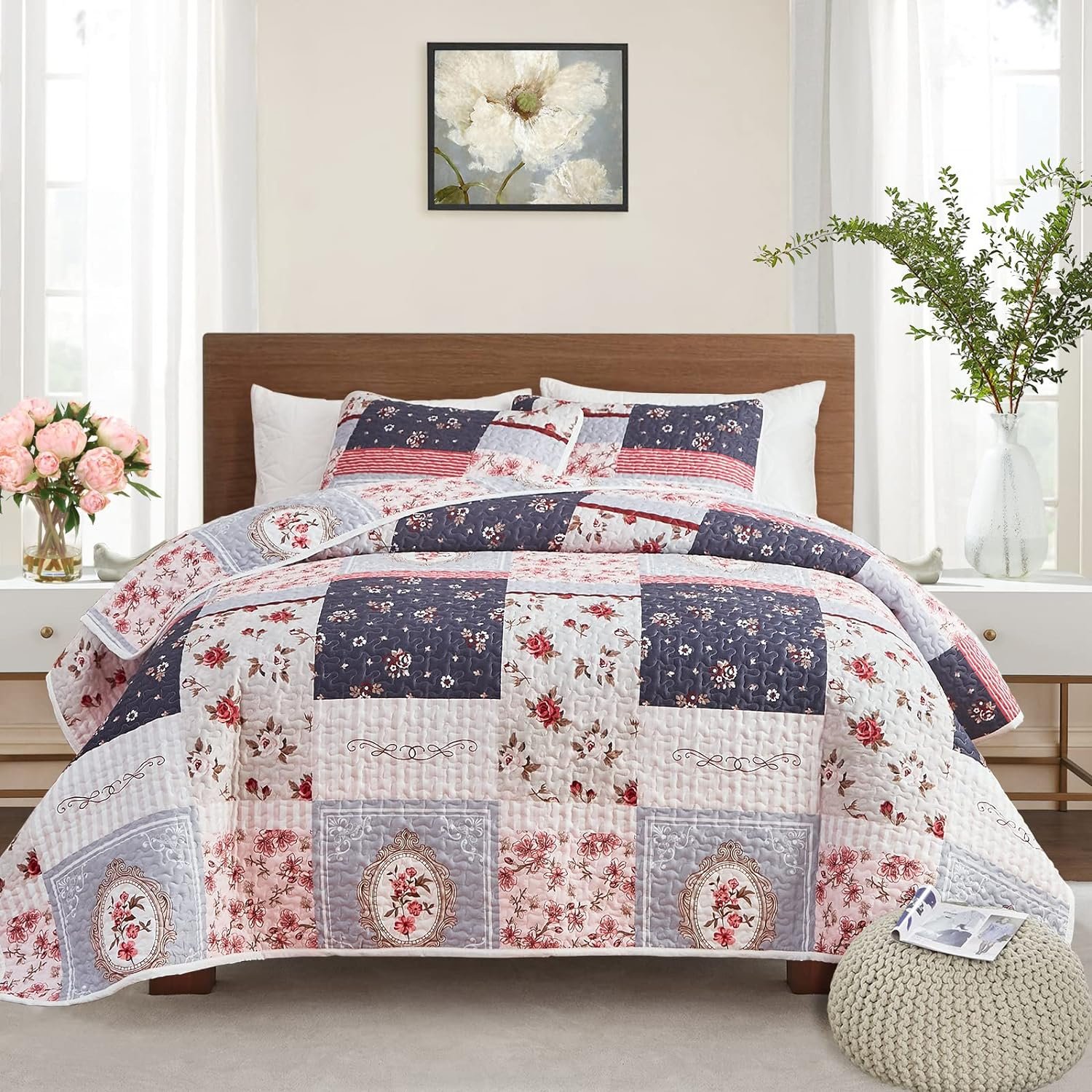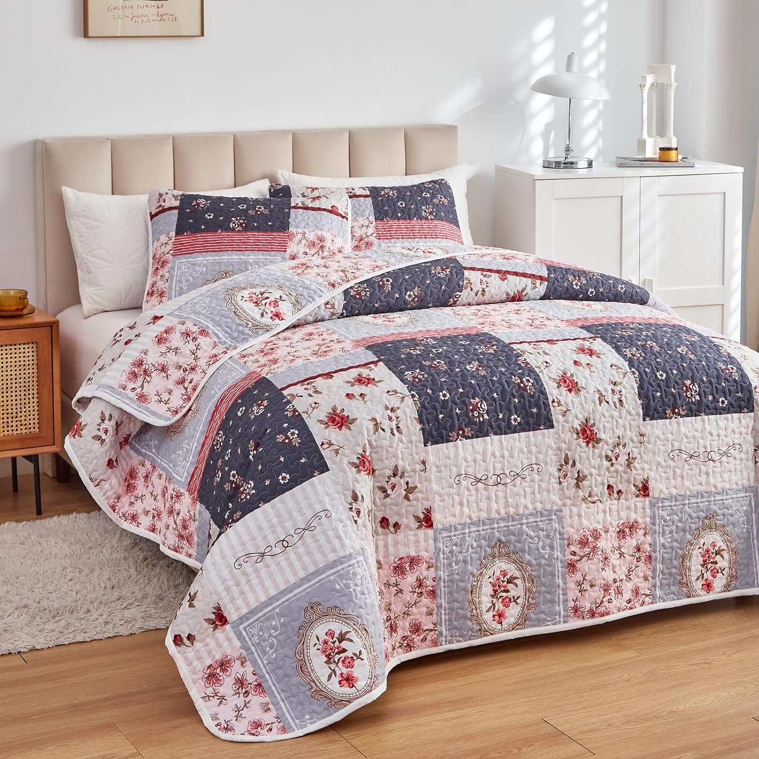 - Unique Design: Both sides are printed with pink purple blue colorful floral plaid. The unique patchwork pattern and variety of color combinations can make your bedroom morden and elegant. As a perfect decoration, it is suitable for bedroom, guest room, kids room, vacation home, hotel or cabin room.